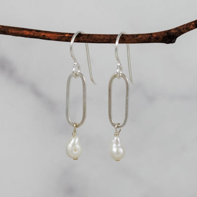 Teardrop Stud with Hanging Pearl Earrings - Sterling Silver