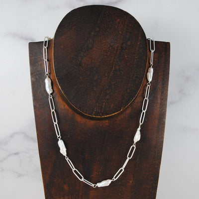 Tahitian Pearl & Petite Paperclip Chain Necklace